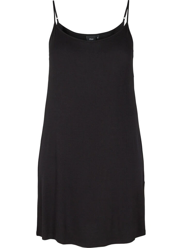 Stylish plain-coloured slip dress with thin, adjustable straps. It is made of a gorgeous, soft and comfortable viscose fabric, and is well suited to wear underneath sheer dresses. An essential item for your basic wardrobe.
