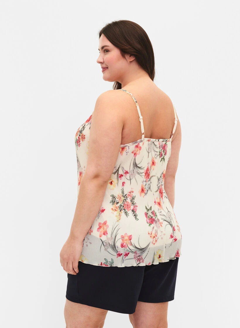 Feminine top in pleated design with a fine v-neckline, narrow adjustable shoulder straps and lining.