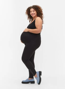 Block coloured pregnancy leggings in a stretchy viscose blend. They have an extra high tummy piece and finish with press studs at the leg.