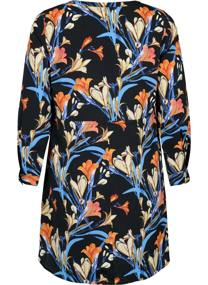 Lovely long-sleeved dress with a V-neckline and buttons on the front. The dress is made from 55% recycled polyester and has a loose fit with an adjustable drawstring waist for a more feminine silhouette.