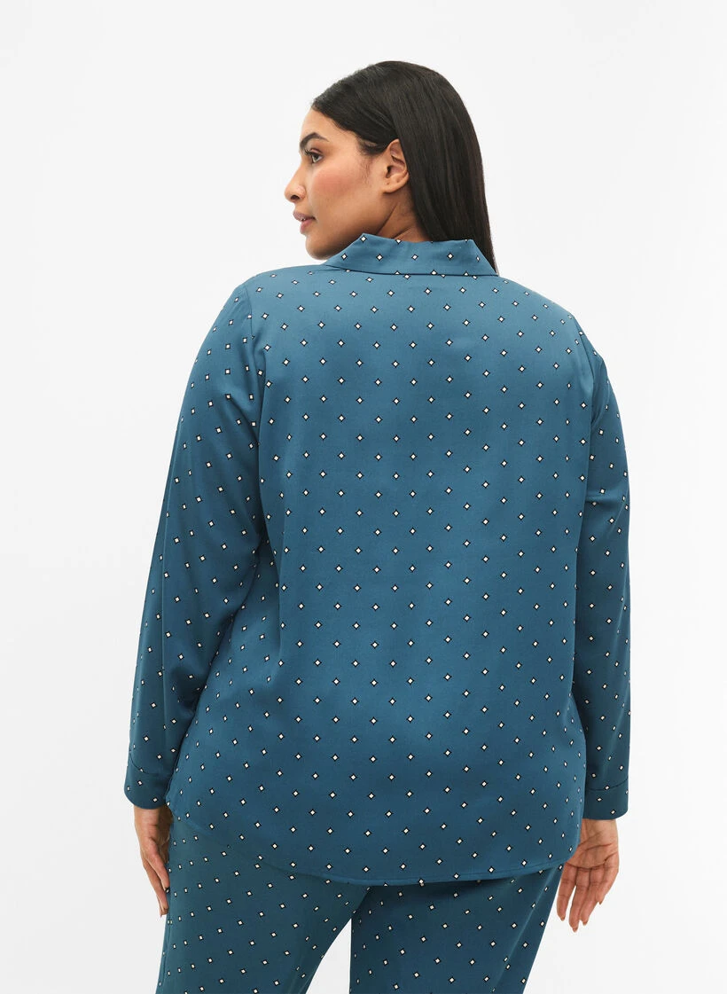 Classic satin nightshirt with a beautiful all-over print. The nightshirt is loose-fitting with a full-length button placket and chest pocket.