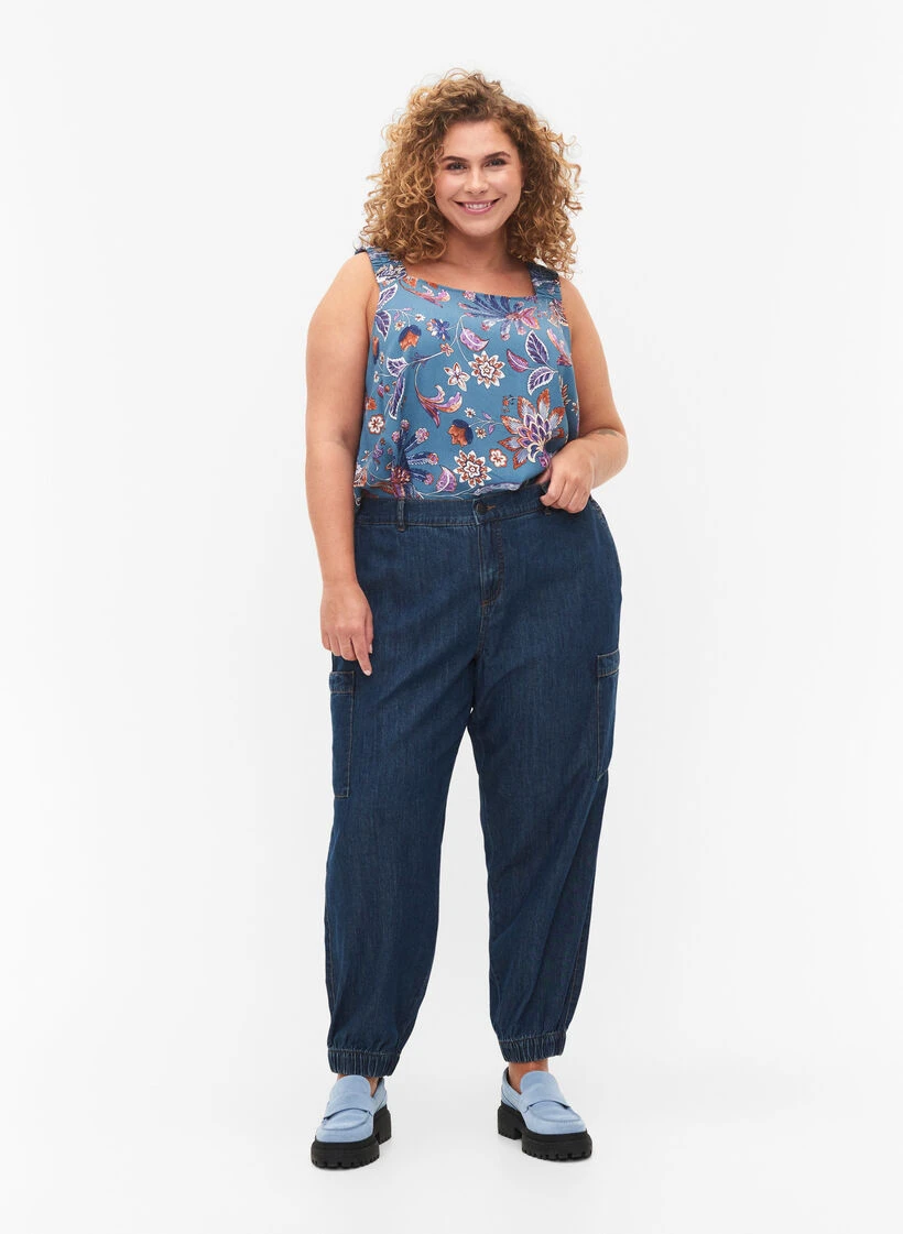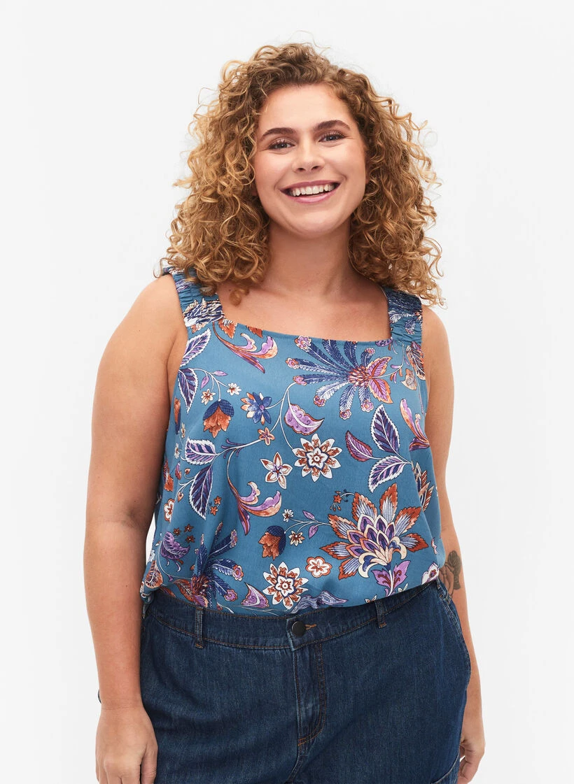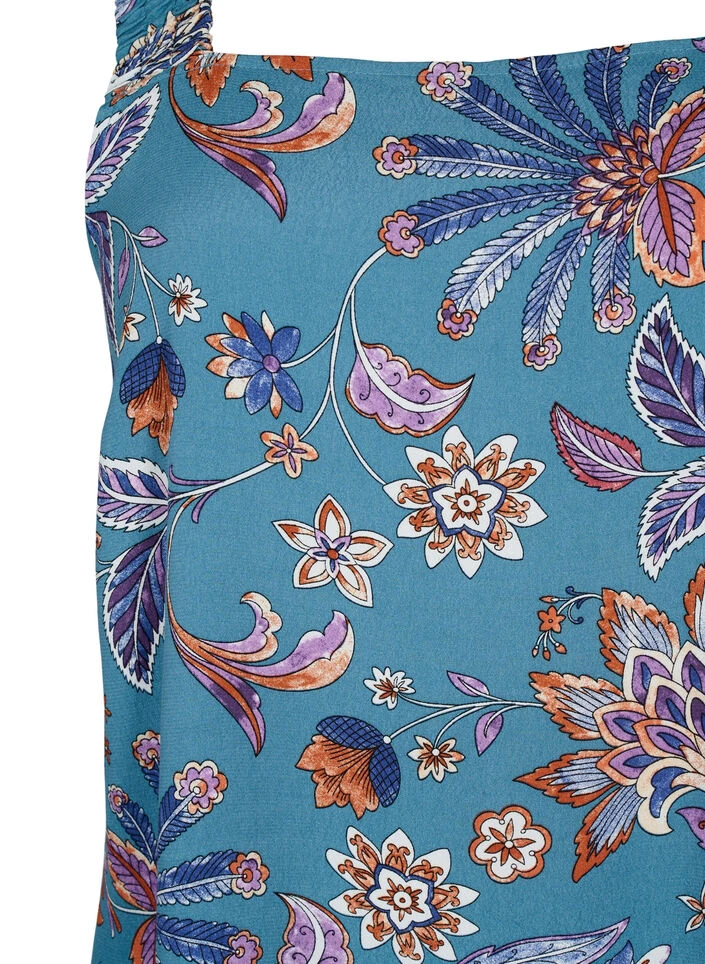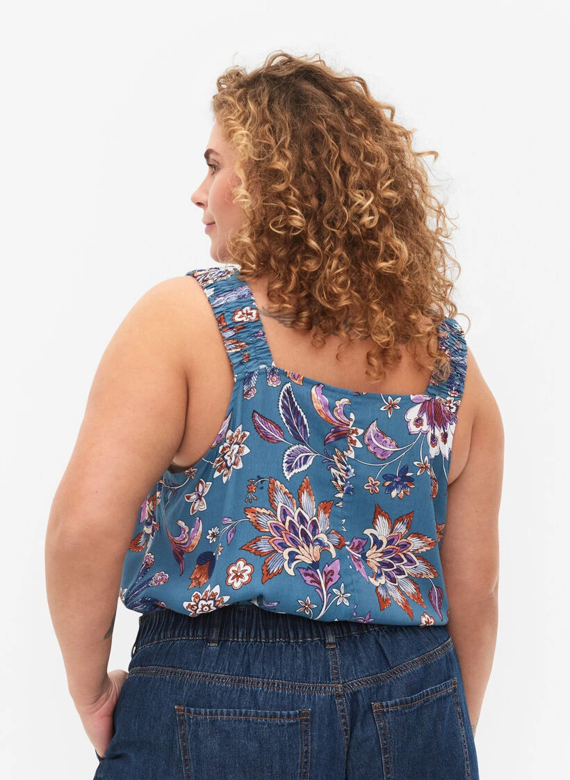 Nice patterned top in a soft viscose fabric with 50% LENZING™ ECOVERO™ Viscose. The top has wide smock straps and a loose-fitting a-shape.