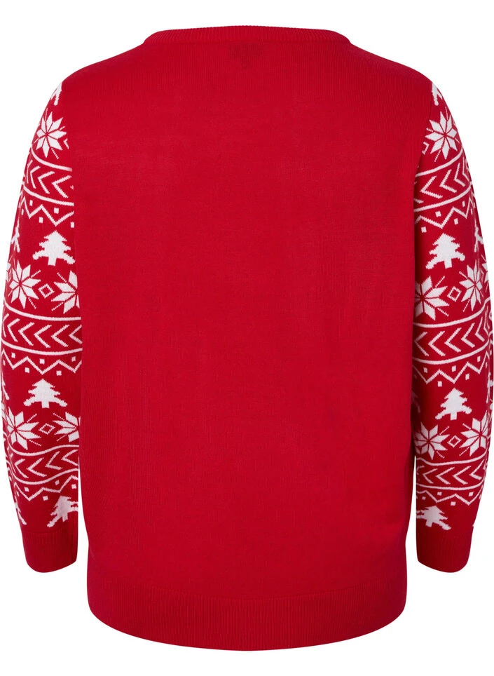 Loose-fitting knit sweater with a Christmas motif. The knitted blouse has a round neckline, and is finished with ribbing at the sleeves, neck and waistband.