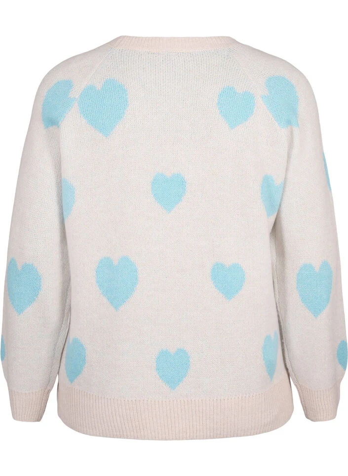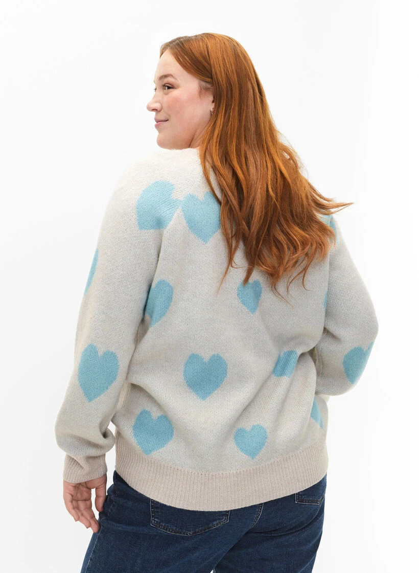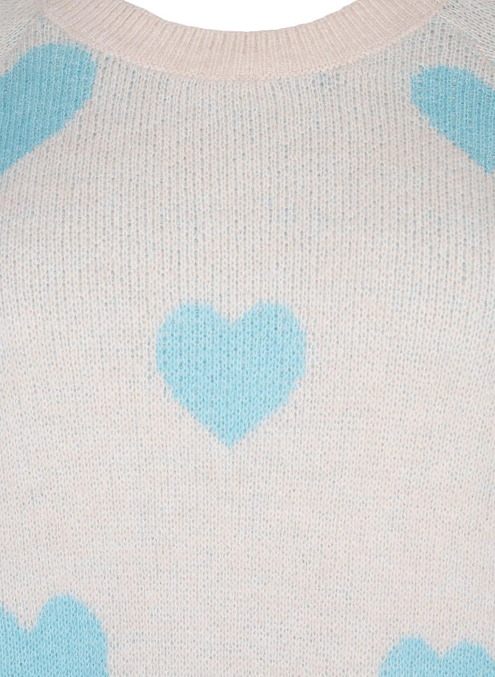 Feminine knitted pullover with a round neckline, long sleeves and a heart pattern. The sweater has wide ribbed edges and is made from recycled polyester.
