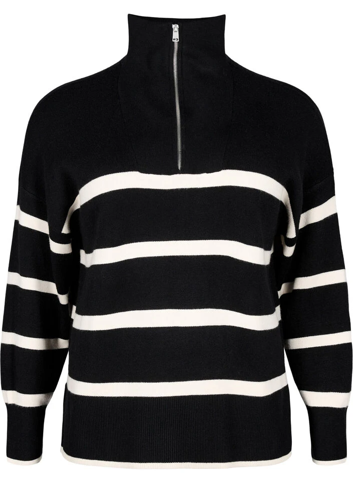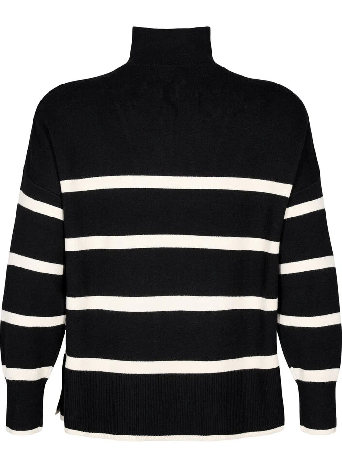 Knitted pullover with stripes and high collar with zipper. The pullover is made from a soft and comfortable material mix of 50% LENZING™ ECOVERO™ Viscose, and has a comfortable fit with side slits and wide ribbed cuffs and hem.