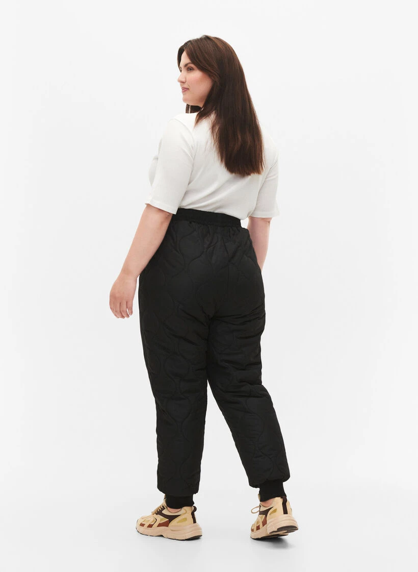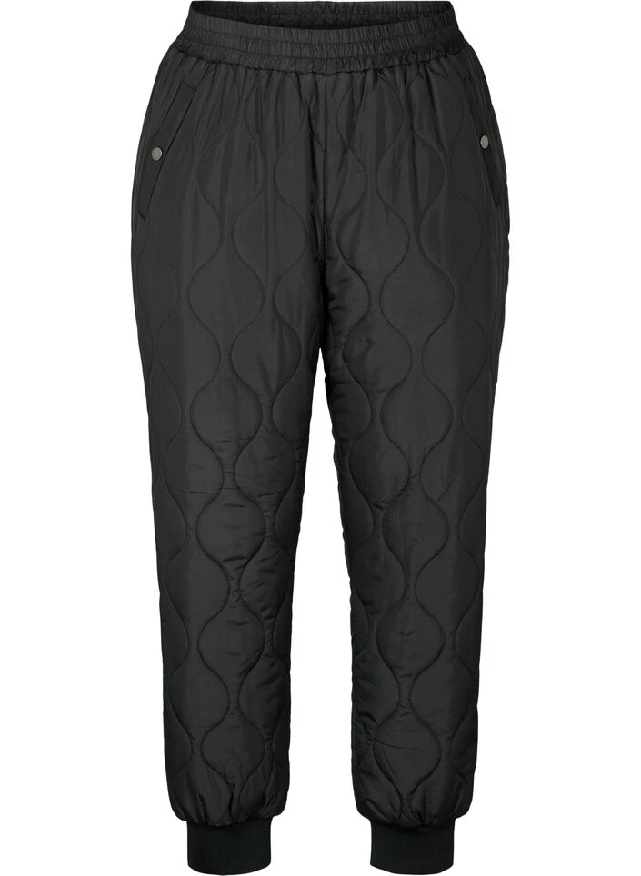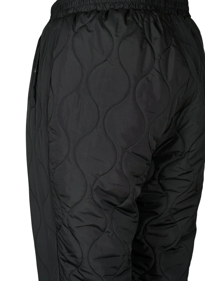 Thermal pants with quilted structure in 100% recycled polyester. The pants have an elastic waistband, side pockets with press buttons and ribbed hem to keep the wind out.