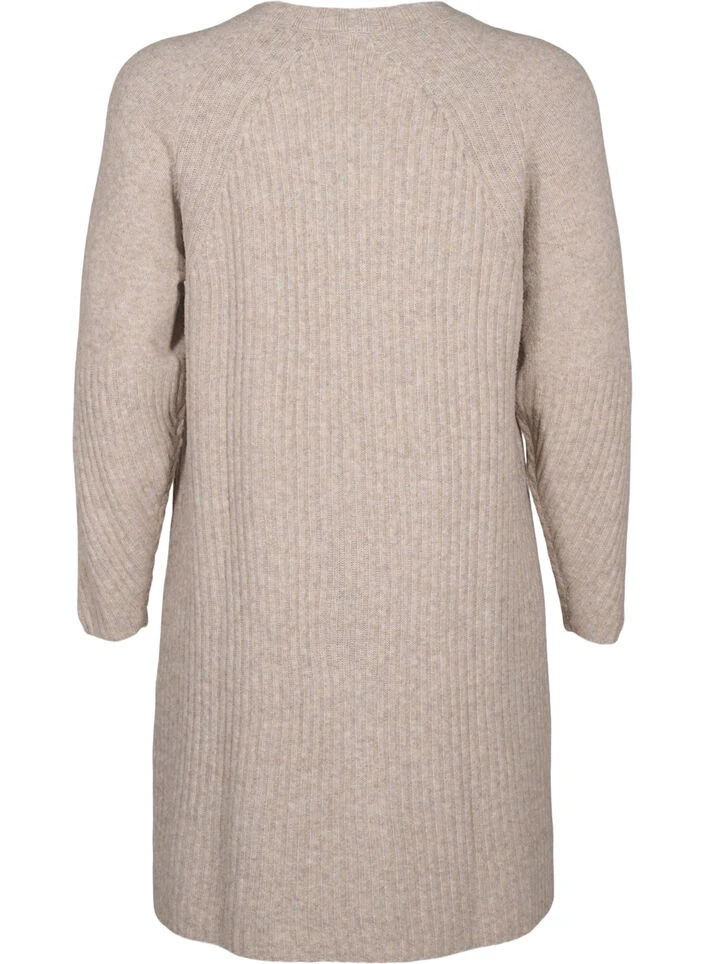 Melange ribbed knit dress with a round neckline, long sleeves and side slits. The knitted dress has a straight fit and is made in a soft quality with 10% wool.