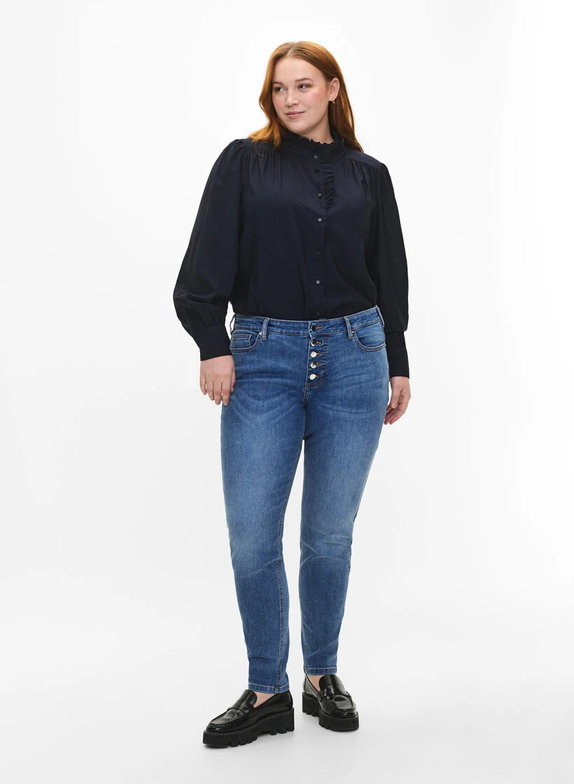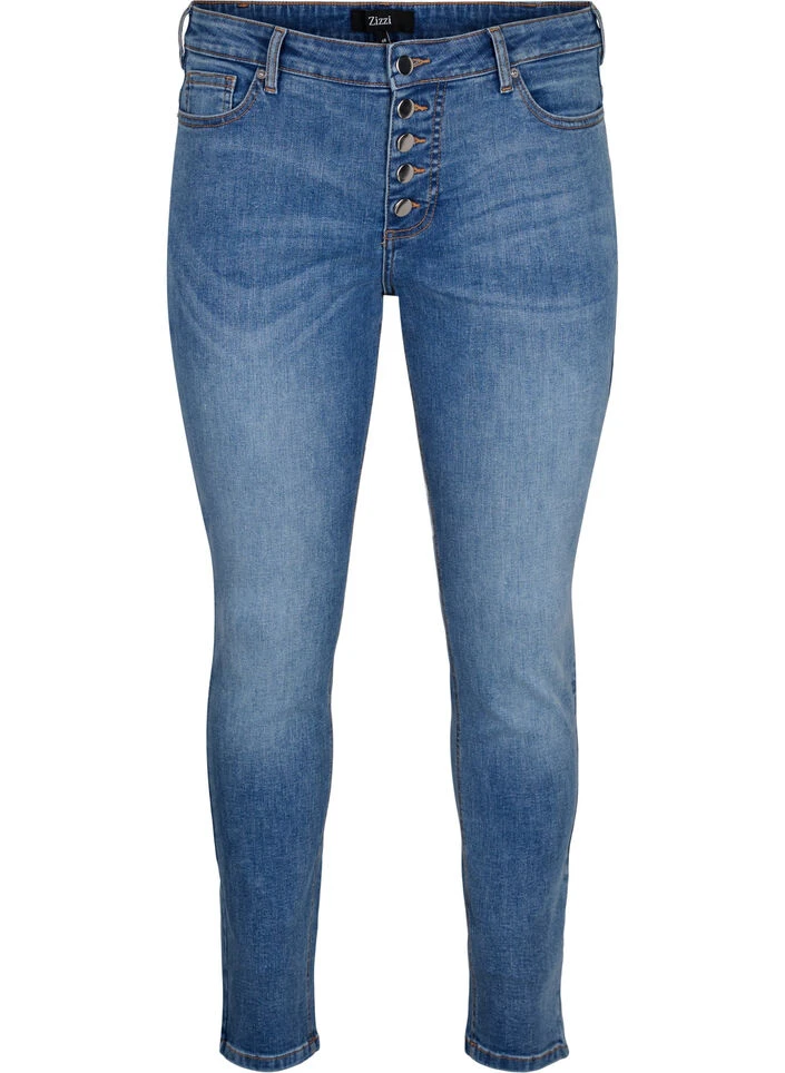 Super slim fit jeans in a comfortable blend of cotton and 15% recycled polyester. These jeans have a regular waist, classic pockets, belt loops and a button closure.