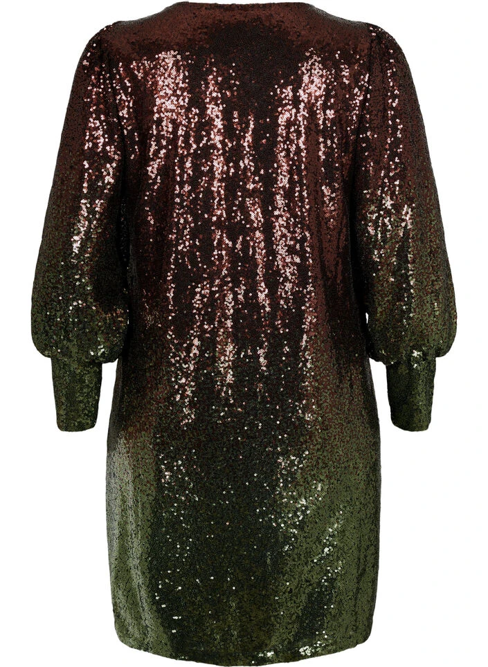 Super nice and festive dress with sequins. The dress has a loose fit, round neckline and long sleeves with high cuff, which create a slight balloon effect.