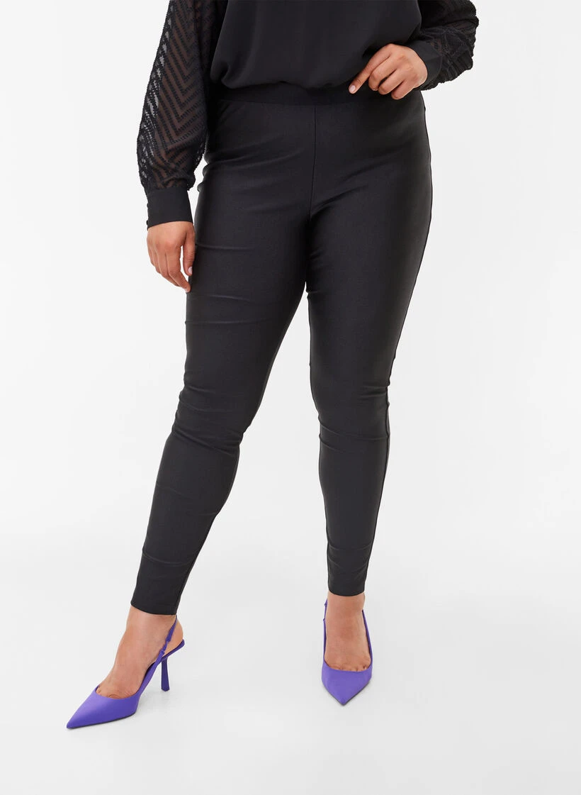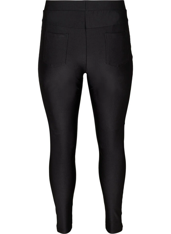 7/8 leggings with a shiny look, which are made in a comfortable stretchy material. They have a high waist with elasticated edge and back pockets.