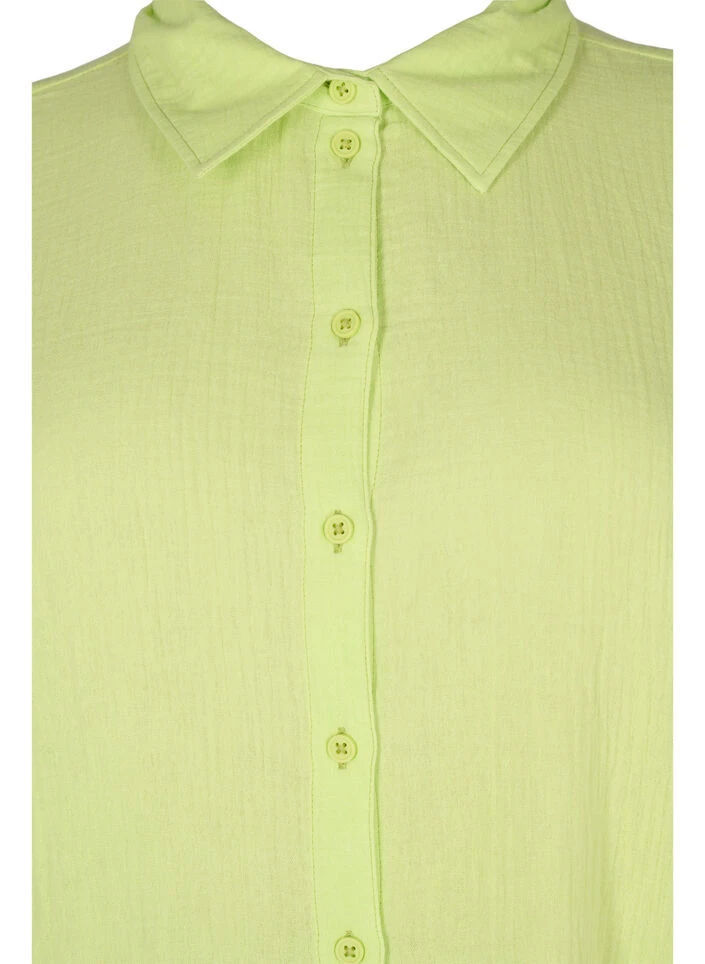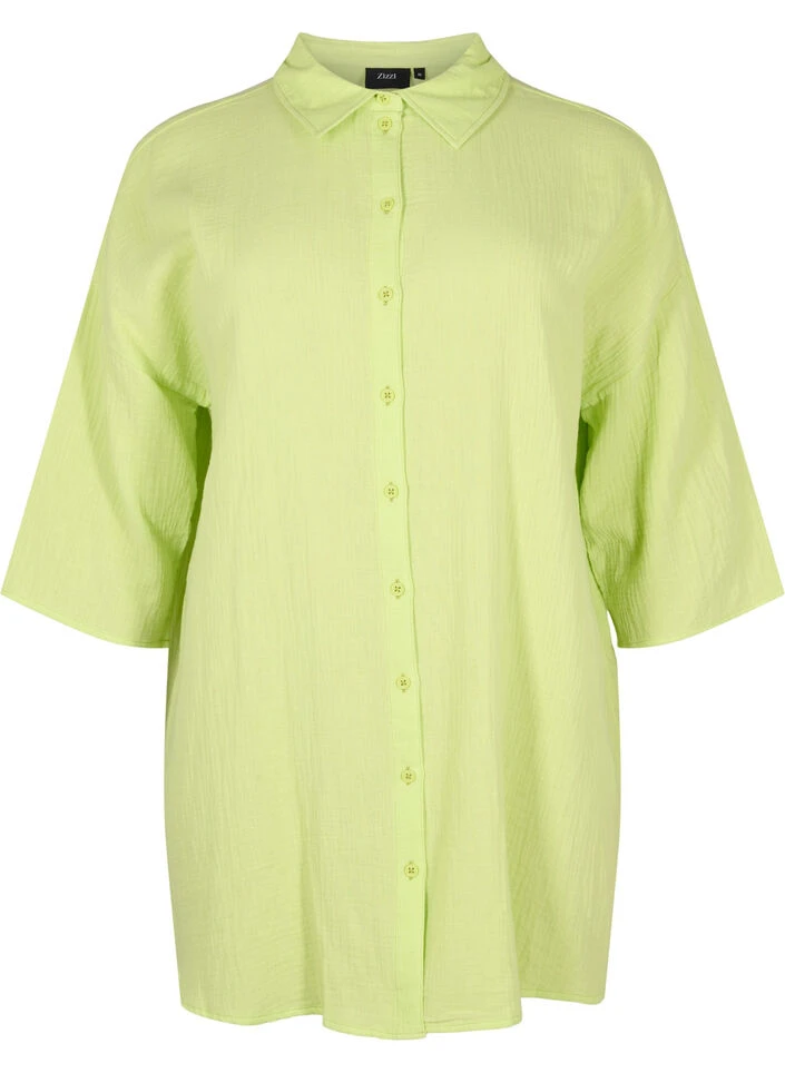 Long shirt with loose fit, which is made in a soft cotton quality with structure. The shirt has half-length sleeves, classic shirt collar and is closed with buttons at the front.
