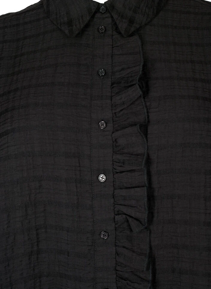 Shirt in a lovely material mix with lyocell (TENCEL™) and a nice texture in the fabric. The shirt has a classic collar and feminine ruffle detail along the button closure.
