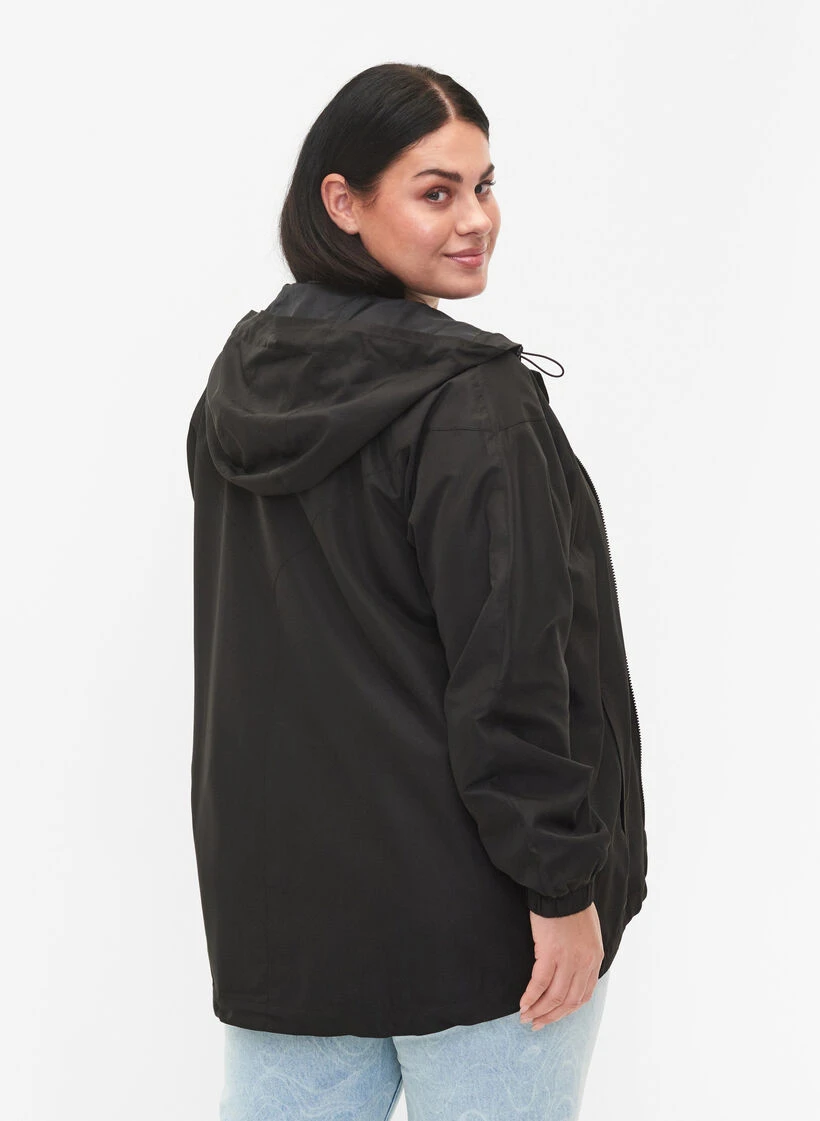 Short sporty spring jacket in a comfortable lightweight material. The jacket closes with a zipper at the front, has a hood with adjustable drawstring and pockets at the side. The jacket has an adjustable drawstring at the bottom, so you can easily create the desired fit.