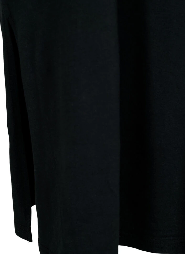 Plain cotton dress with short sleeves and v-neckline. The dress has a chest pocket and a loose fit with a slit in the side