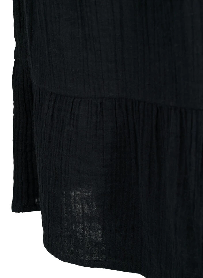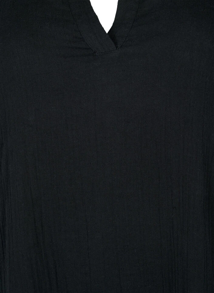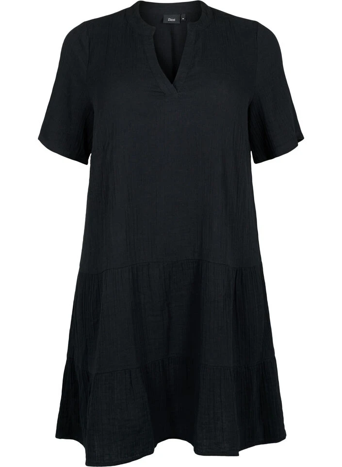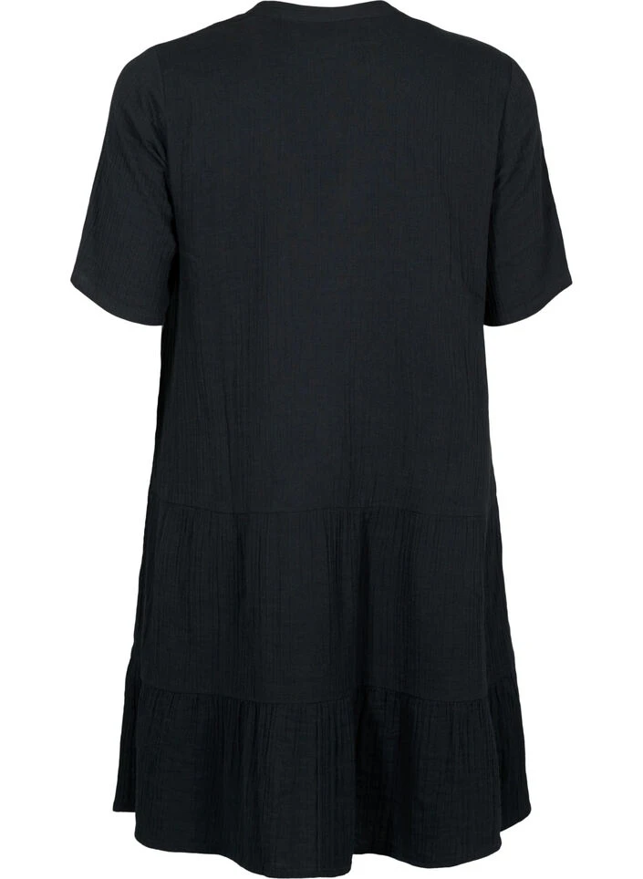 Short-sleeved dress in a lightweight and breathable muslin quality of 100% soft cotton. The dress has short sleeves, a v-neckline and a loose fit.