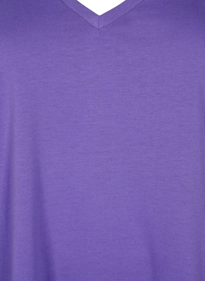 Solid coloured basic t-shirt in a soft cotton blend, which has short sleeves and v-neckline.