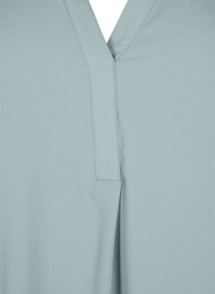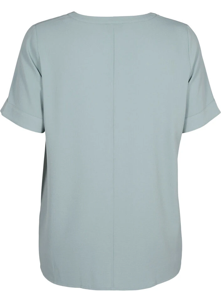 Solid-coloured blouse with a v-neckline and turned-up short sleeves. The blouse has a loose fit and is made from a fabric with 55% recycled polyester.