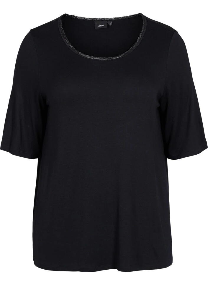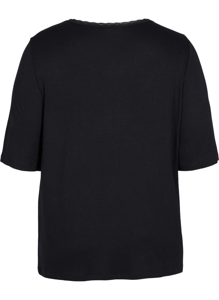 Short-sleeved pyjama top in a soft viscose fabric. The pyjama top is loose-fitting and has a round neckline with a lace trim.