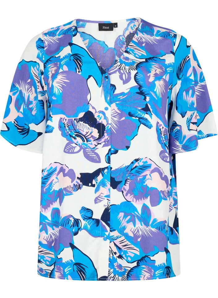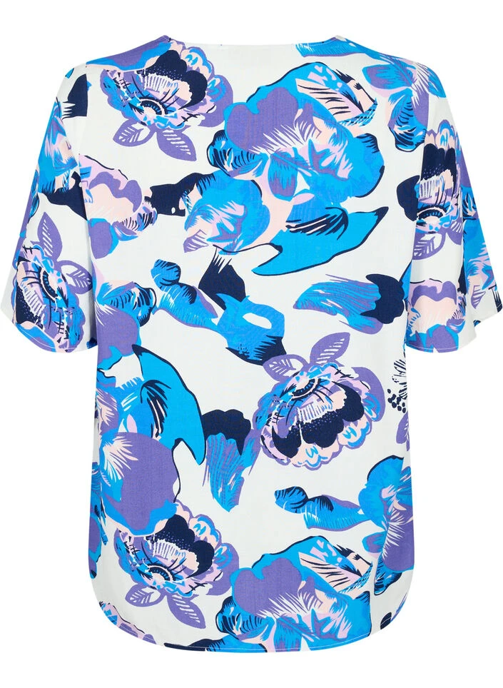 Blouse with nice all-over print, which is made in a soft viscose quality with 51% LENZING™ ECOVERO™ Viscose. The blouse has short sleeves and a v-neckline.