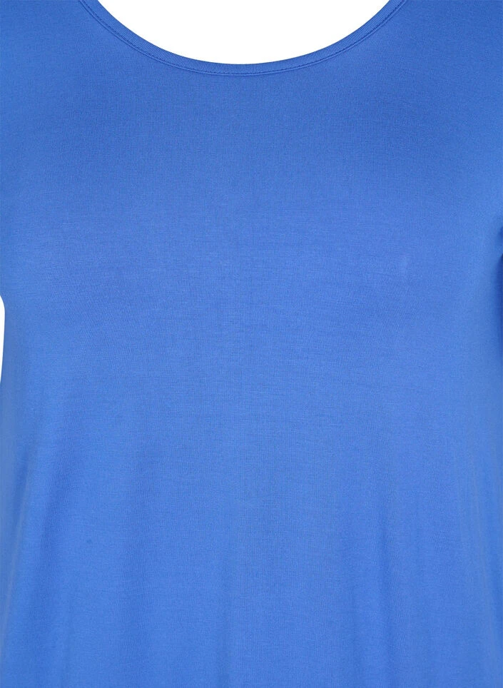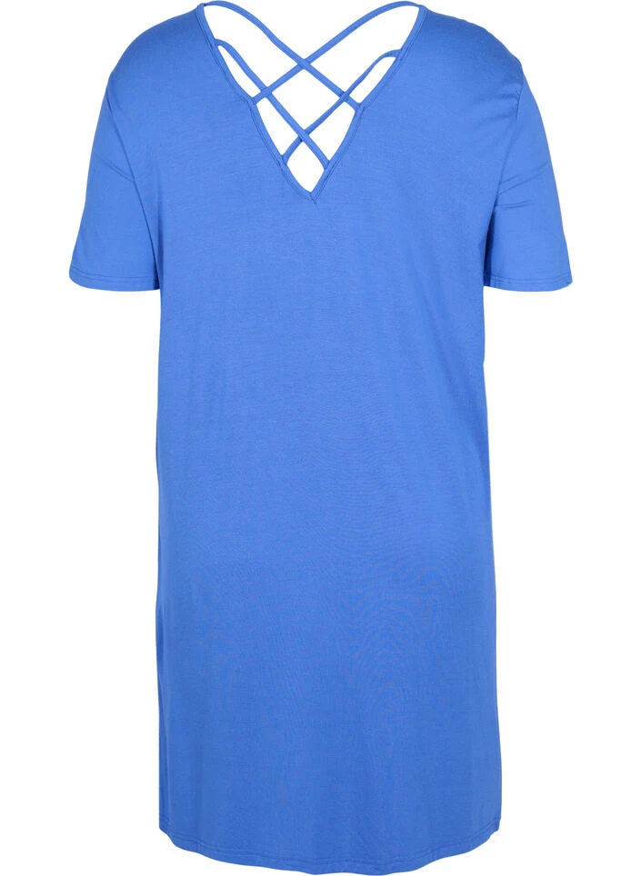 Nice short sleeved dress with a round neckline and a super feminine crossed back. The dress is made in a soft viscose mix and has a comfortable fit that falls easily on the body.