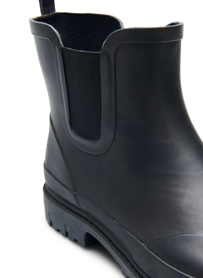 Short rubber boot with a wide fit that has elastic on both sides to ensure the best fit.