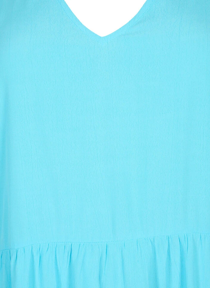 Solid colored tunic with v-neck and short sleeves with elastic edge. It is made in a delicious viscose quality with 50% LENZING™ ECOVERO™ Viscose, and has pleated cuts that give a nice fall to the loose a-shape.