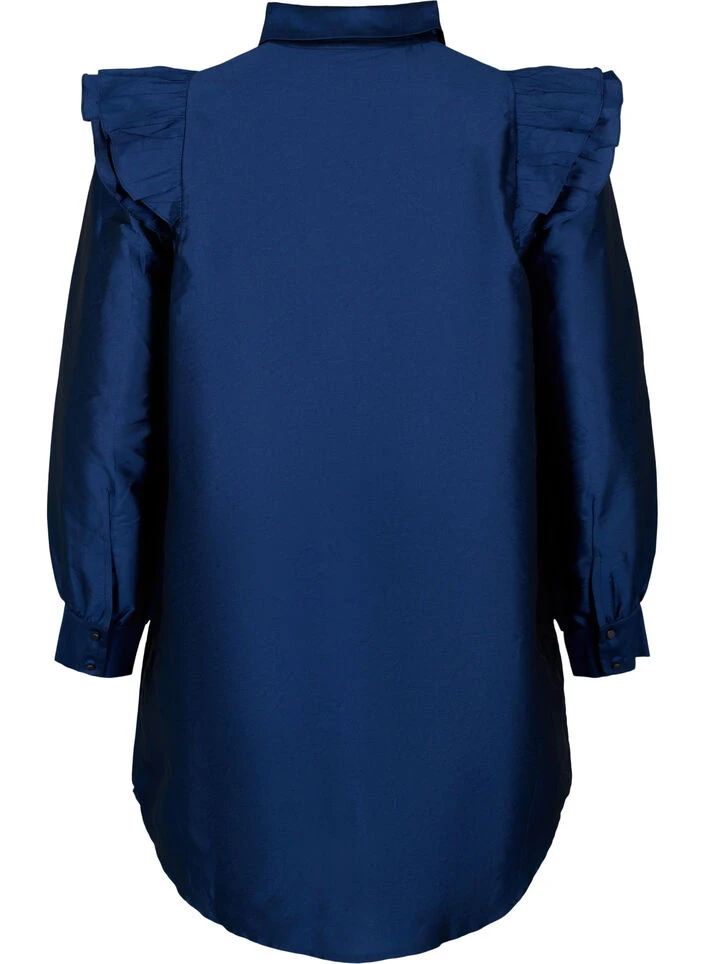 Monochrome shirt with structure and a feminine ruffle detail. The shirt has long sleeves, a classic shirt collar and full front button closure.