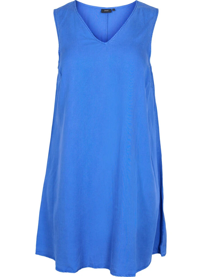 Classic sleeveless spencer dress made from 100% soft lyocell (TENCEL™). The dress has a v-neckline and a loose A-line, which falls gorgeously over the body.