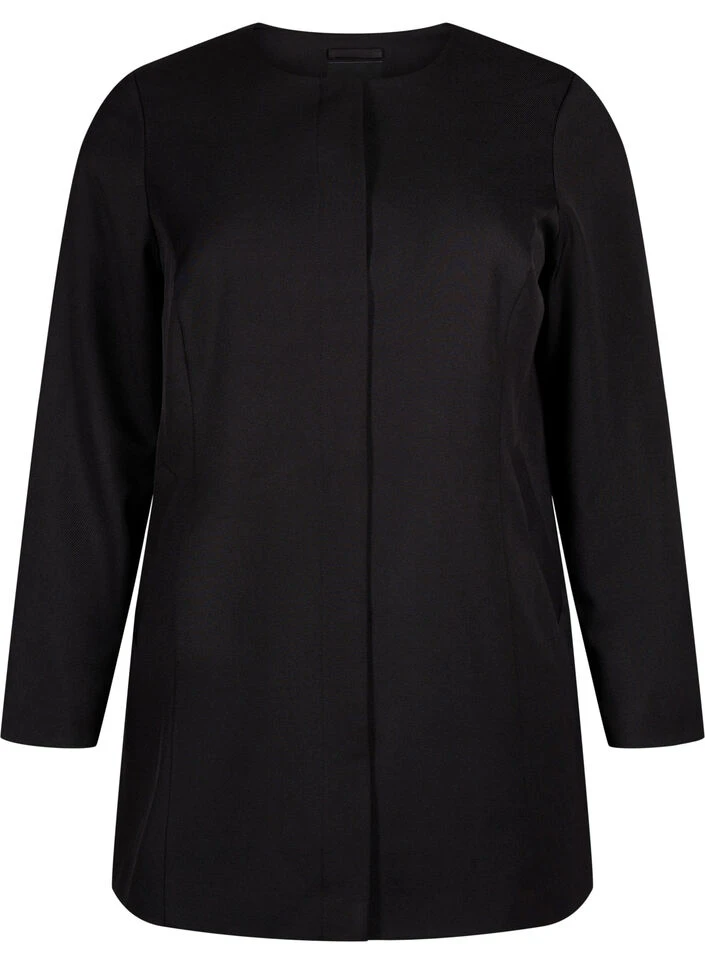 Lightweight jacket in an elegant and simple design with side pockets. The jacket has a concealed button closure and a simple round neck.