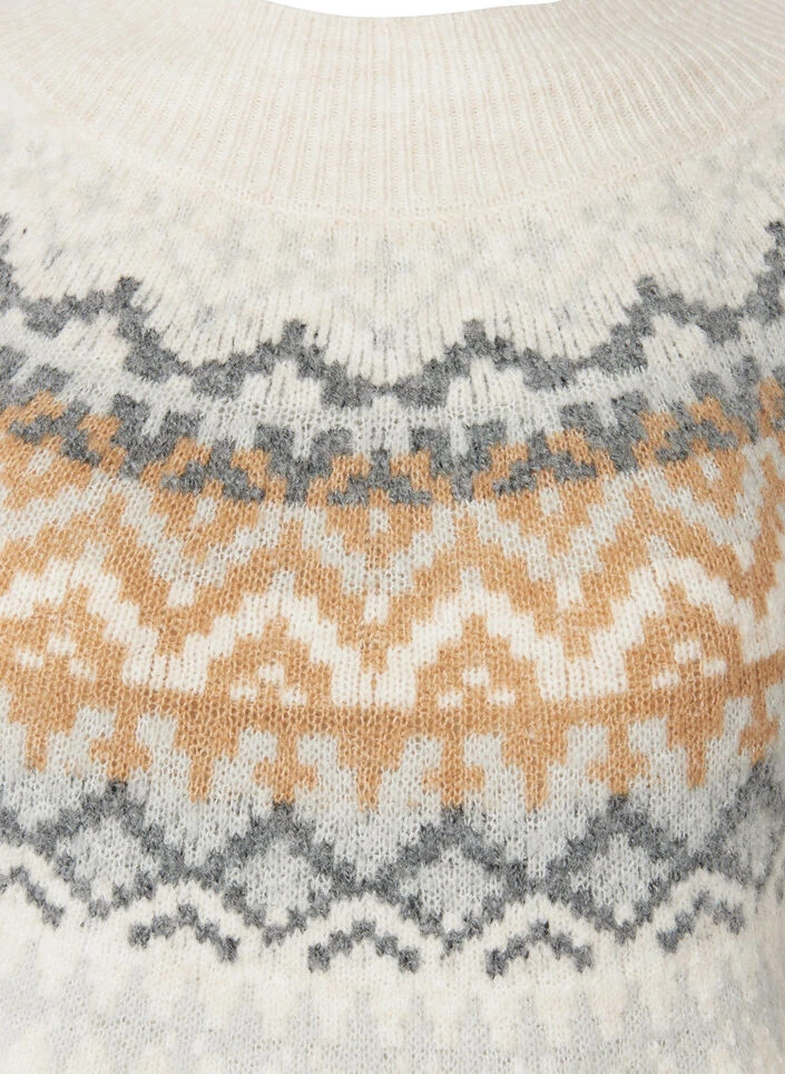 Loose-fitting pullover in a beautiful patterned design. The knitted pullover has long sleeves, a high neck and is finished with wide ribbed edges.