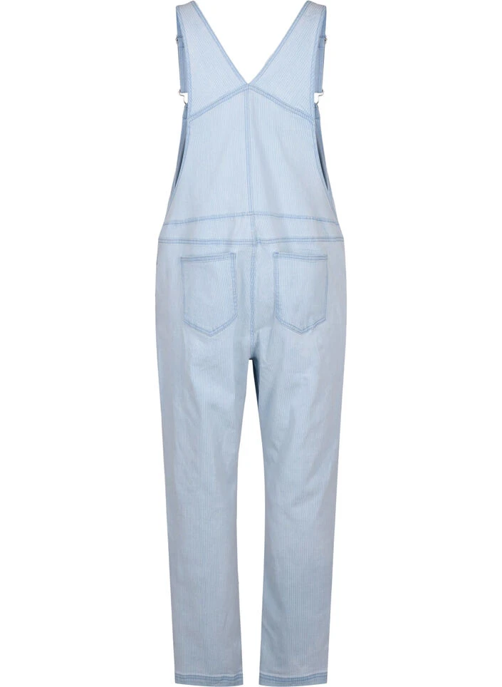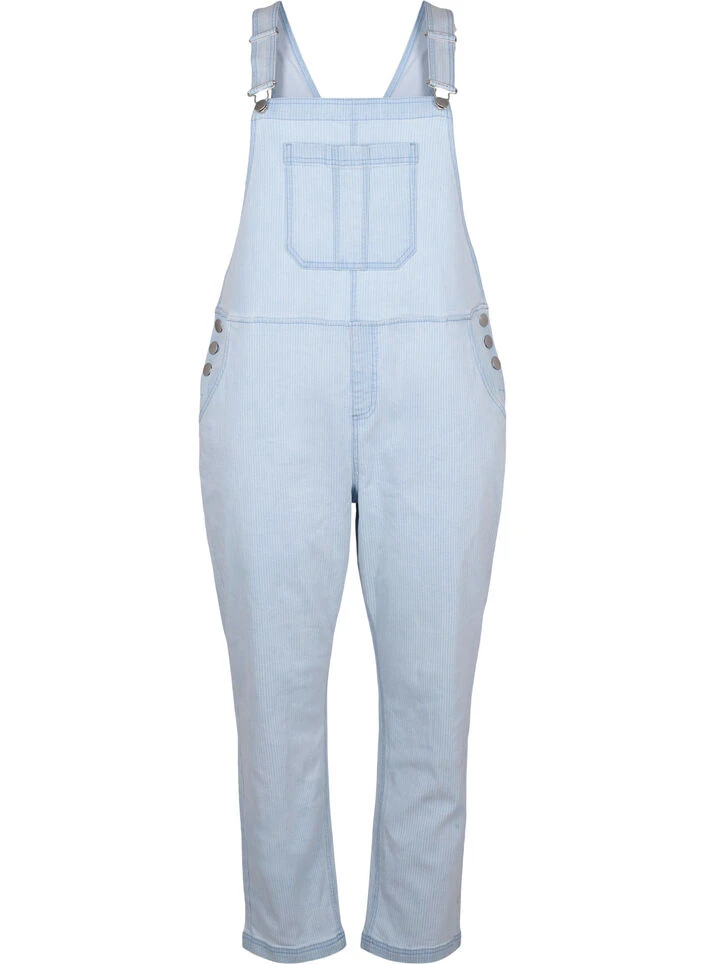 Super trendy denim overalls in a stretchy cotton fabric with a beautiful striped design. These bib pants have adjustable suspenders with hook-and-loop fastening, side button closure and front and back pockets.