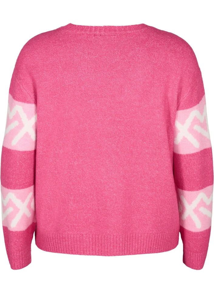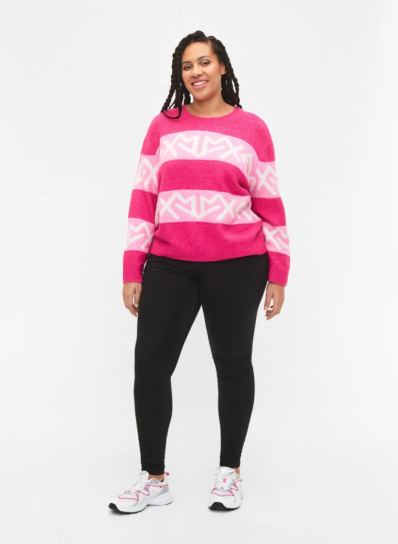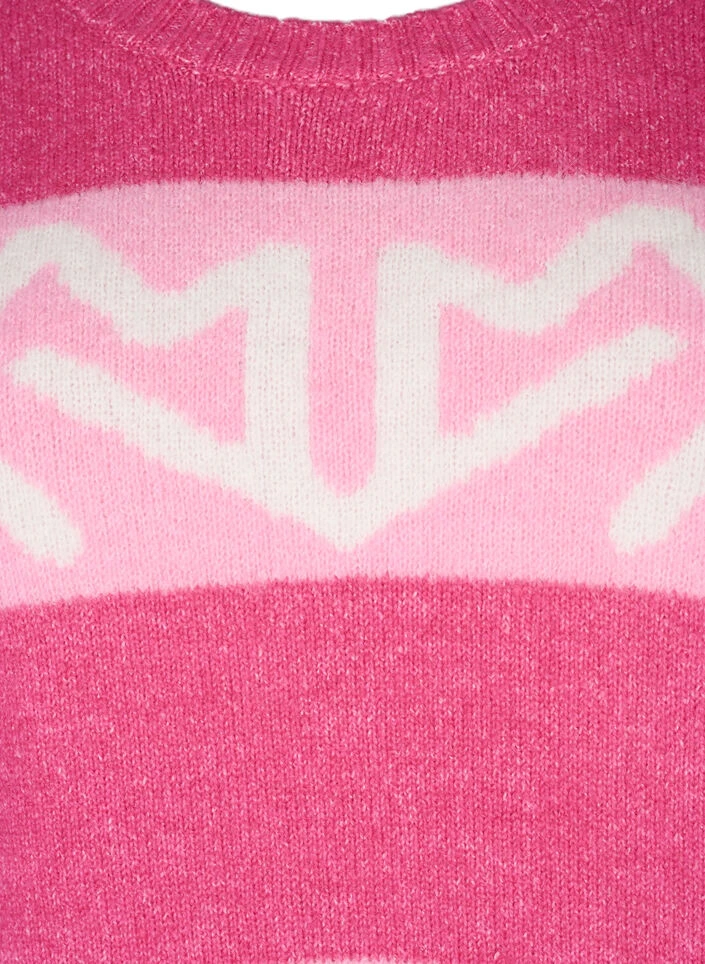 Striped knitted pullover with a decorative graphic pattern and wide ribbed cuffs and hem. The pullover is made from a soft material with a comfortable fit.
