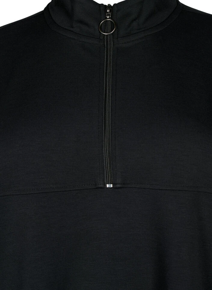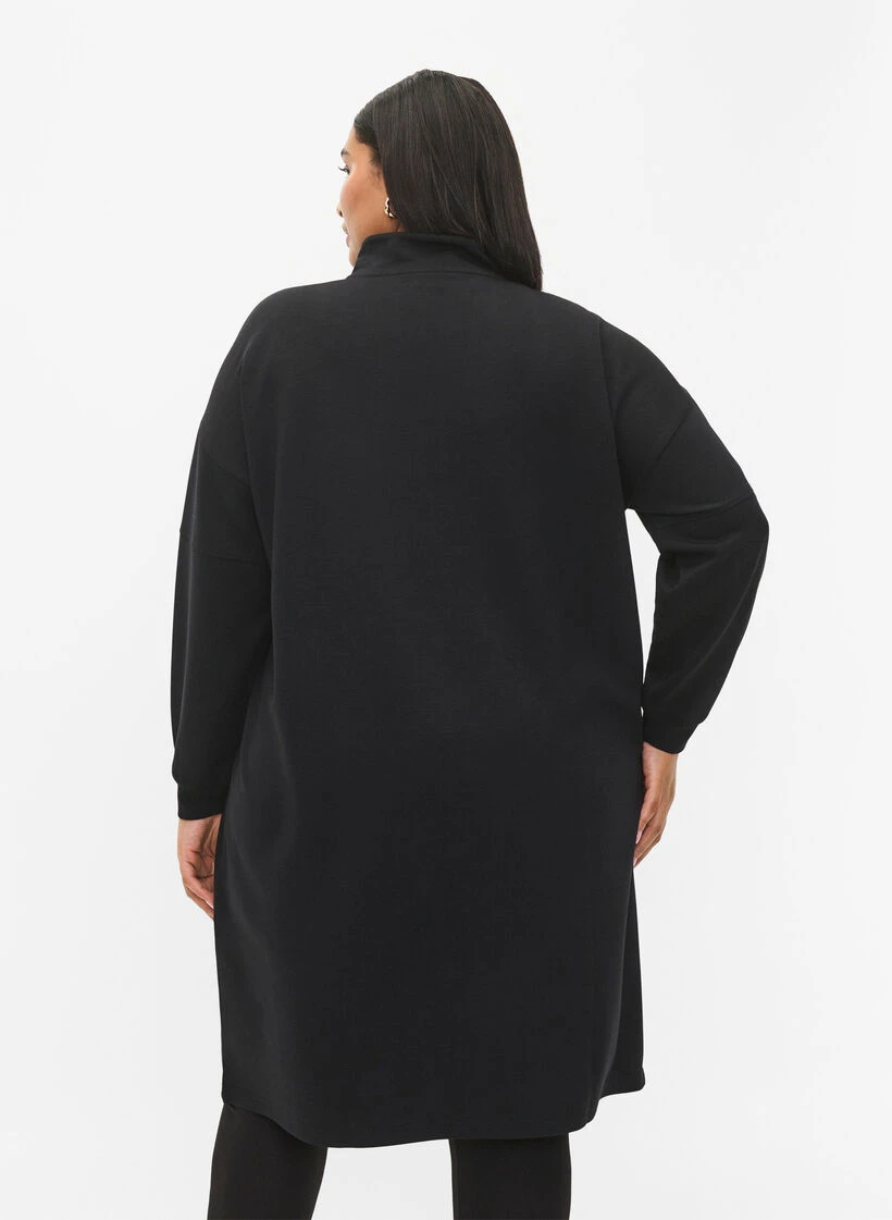 Comfortable and loose-fitting sweatshirt dress with a high neck and a short zipper. The dress is made from a soft and stretchy mixed fabric with modal.
