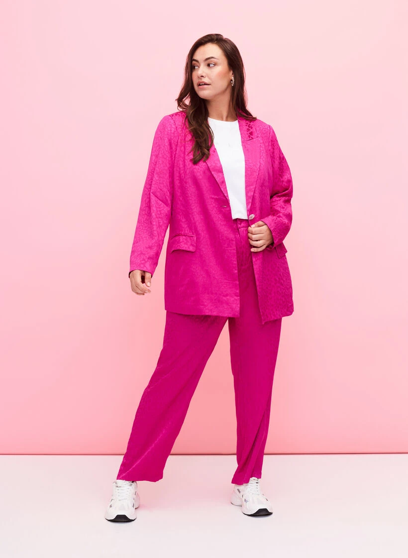 Trousers in a beautiful tone-on-tone jacquard made from 100% viscose. The trousers are designed with a straight fit, regular waist height with elastic at the back and side pockets.