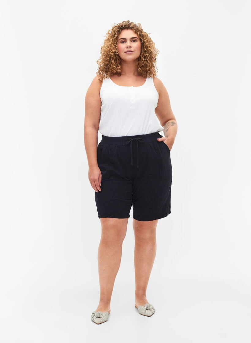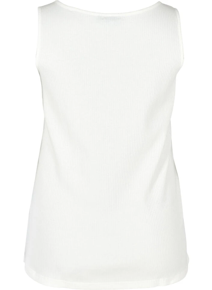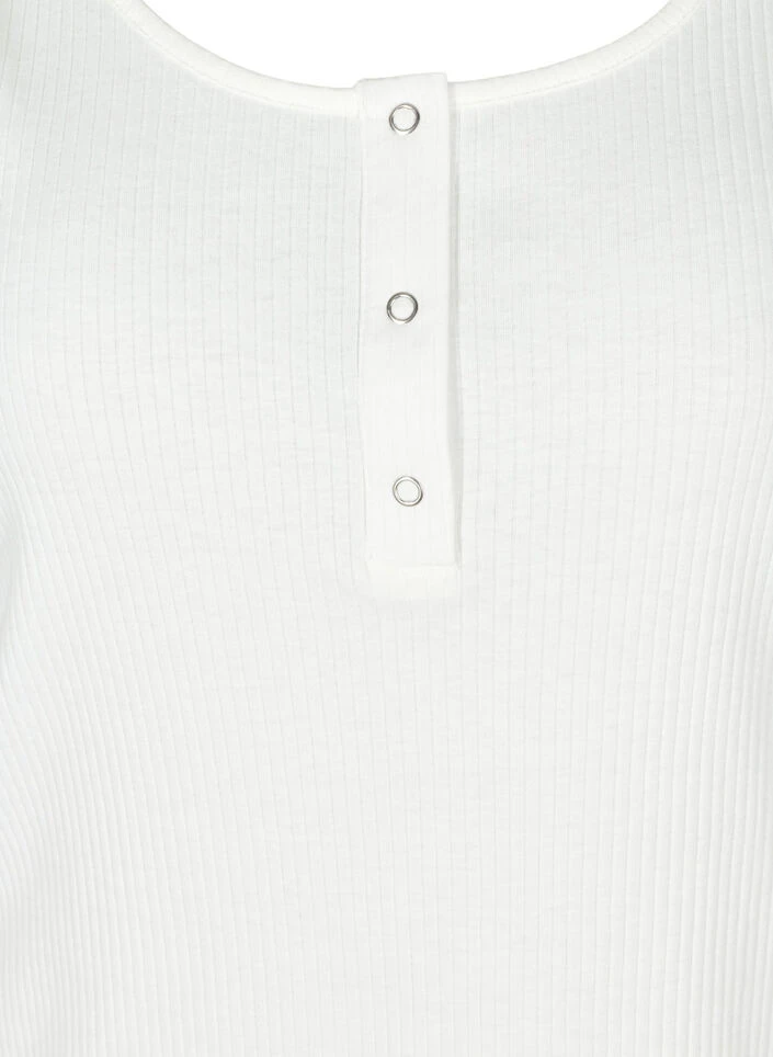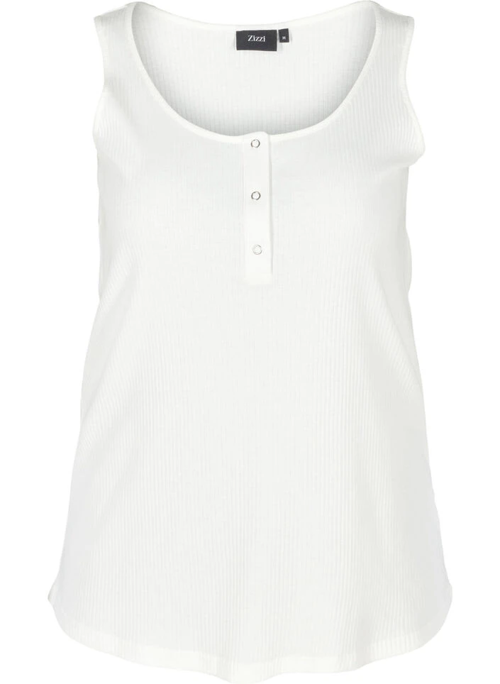 Simple and comfortable sleeveless top in a ribbed fabric. The top is made in a fabric blend with cotton and has a round neckline with buttons at the top.