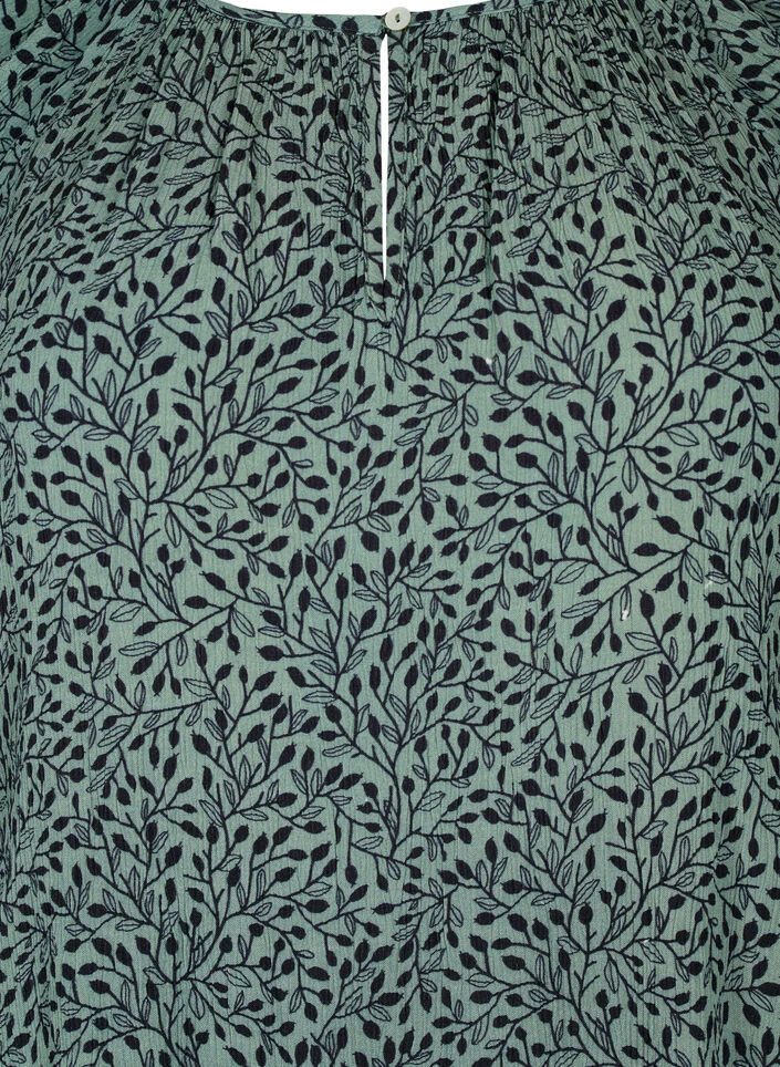 Loose-fitting tunic with an a-silhouette and a pretty all-over print. This tunic is made from 100% LENZING™ ECOVERO™ Viscose, and features a round neckline with keyhole closure and 3/4 sleeves with cuff and button.