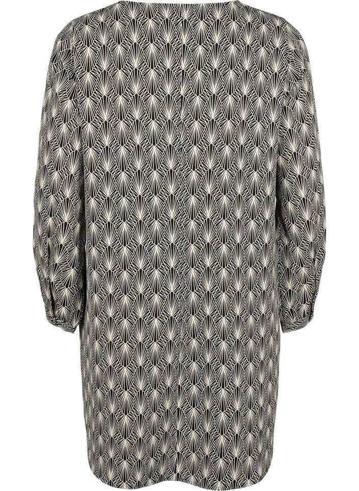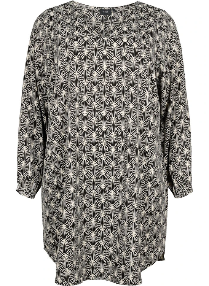 Dress with a beautiful all-over print, made from a nice material with 55% recycled polyester. The dress has long sleeves with button closure, a v-neckline and a rounded edge at the hem.