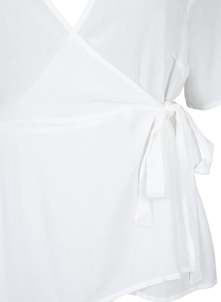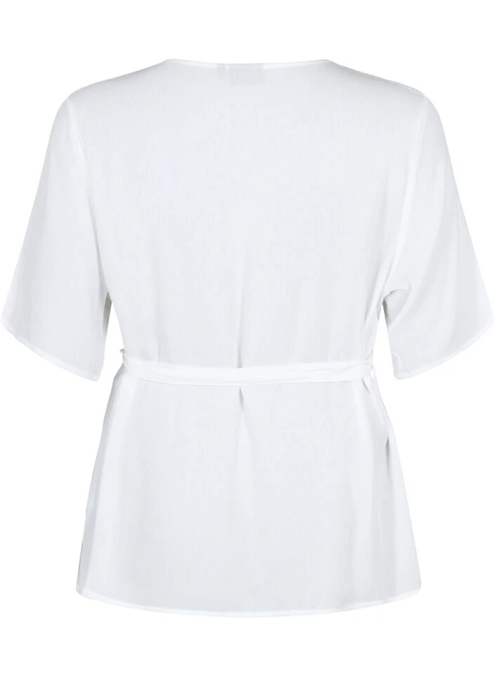 Short-sleeved wrap blouse in a soft quality of 100% LENZING™ ECOVERO™ Viscose. The blouse has a v-neckline and is tied at the waist with a tie, which creates a feminine silhouette.