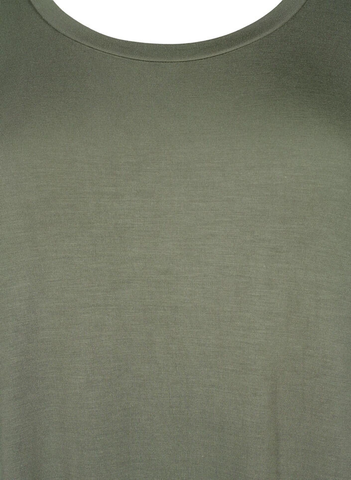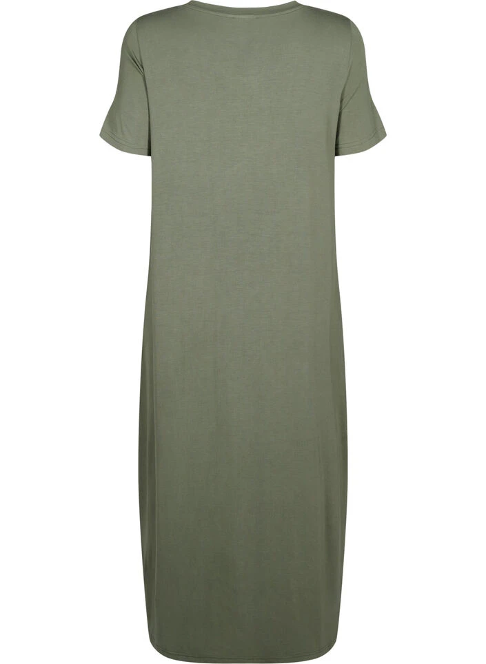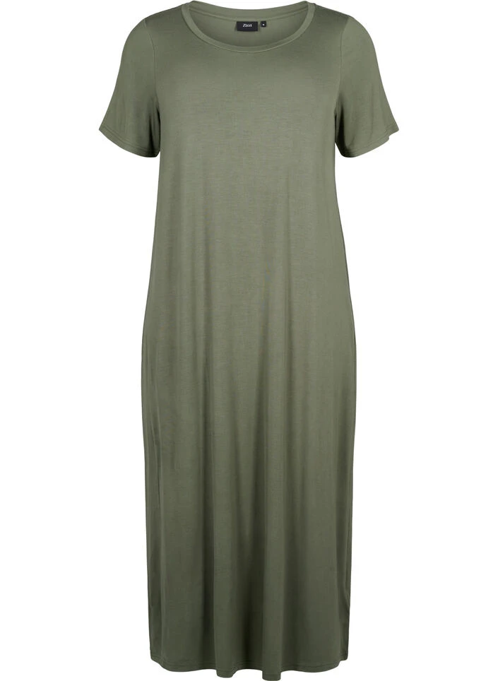 Simple dress with short sleeves, round neck and 7/8 length. The dress is made in a comfortable viscose material with a loose fit.