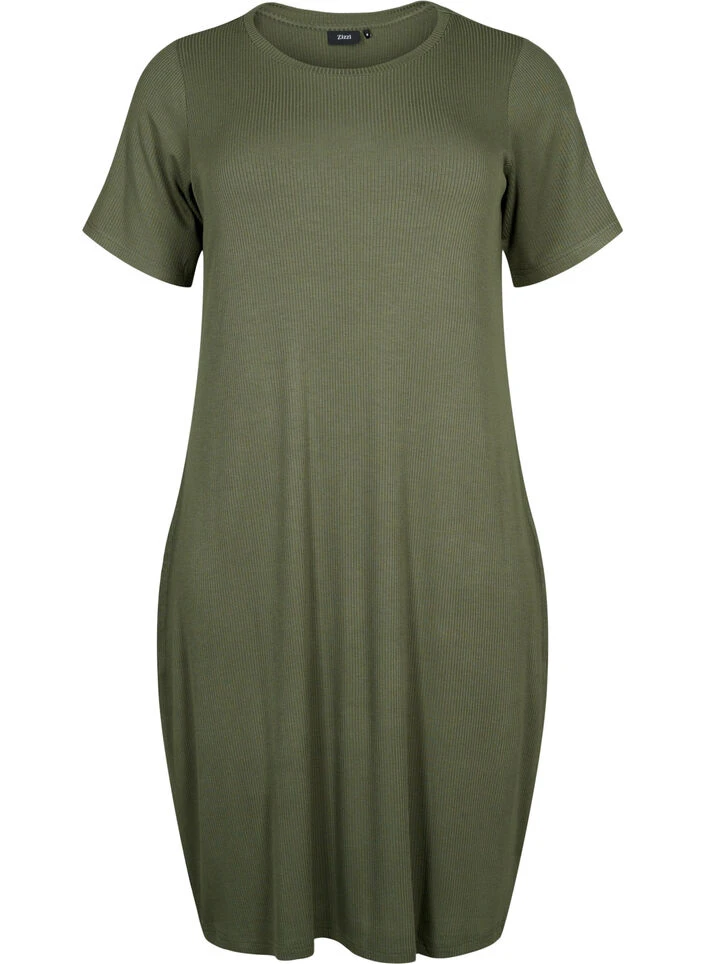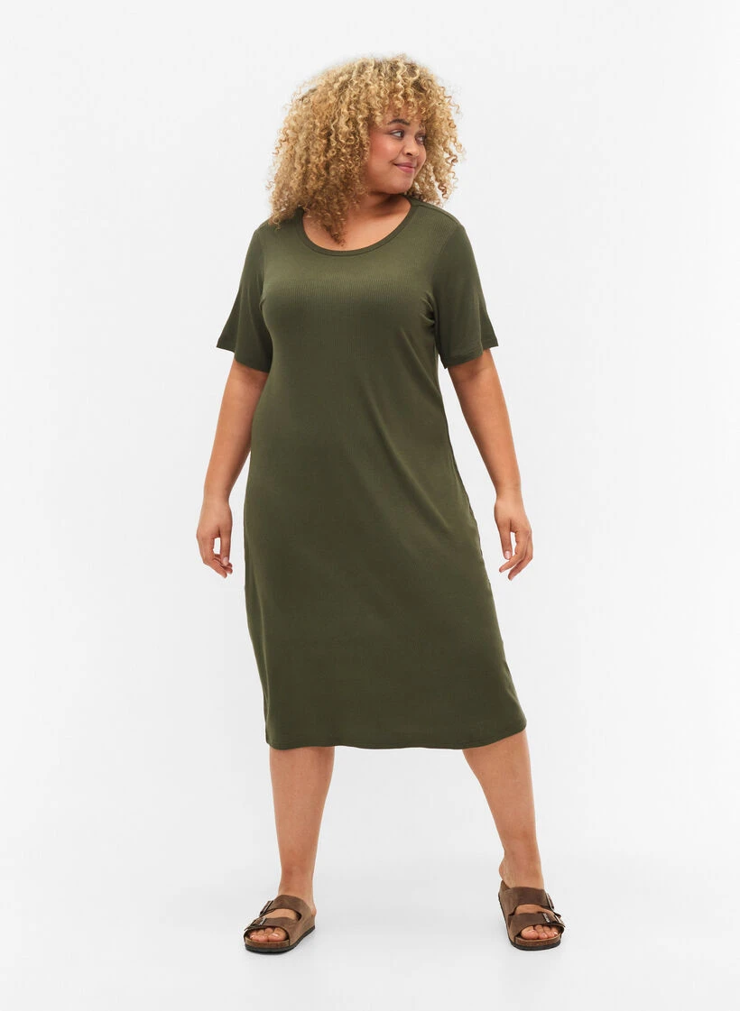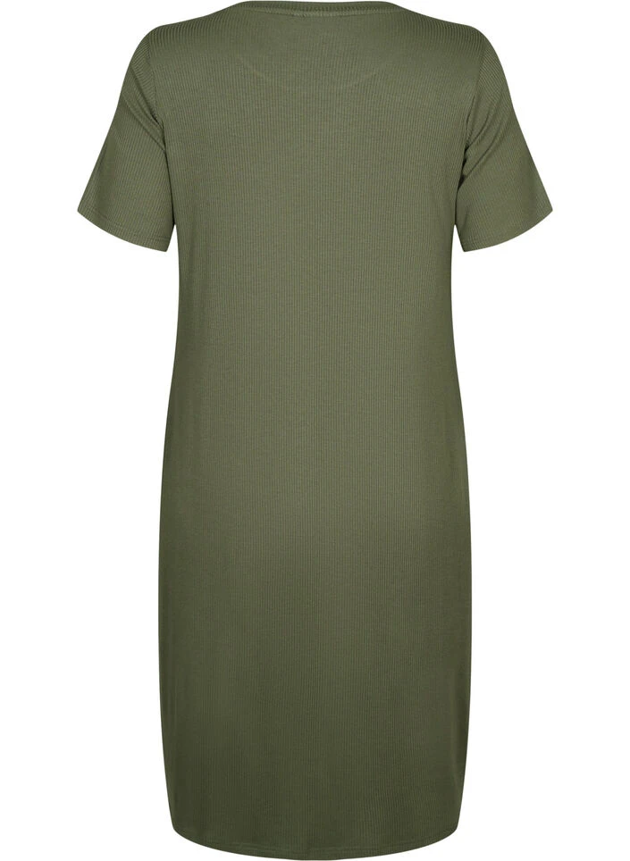Short-sleeved dress with a round neck and a regular fit. The dress is made from a soft and stretchy viscose quality with 95% LENZING™ ECOVERO™ Ribbed viscose.