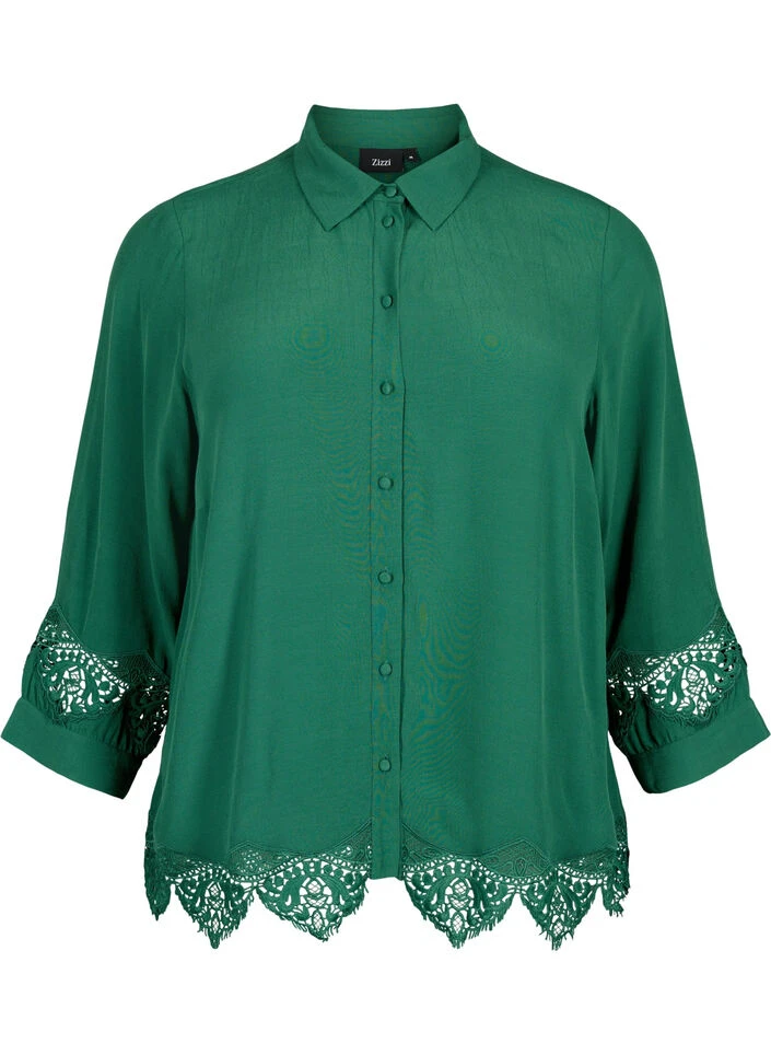 Feminine shirt with beautiful embroidery details on the 3/4 length sleeves and hem. The shirt is made of a comfortable viscose quality with 51% LENZING™ ECOVERO™ Viscose.