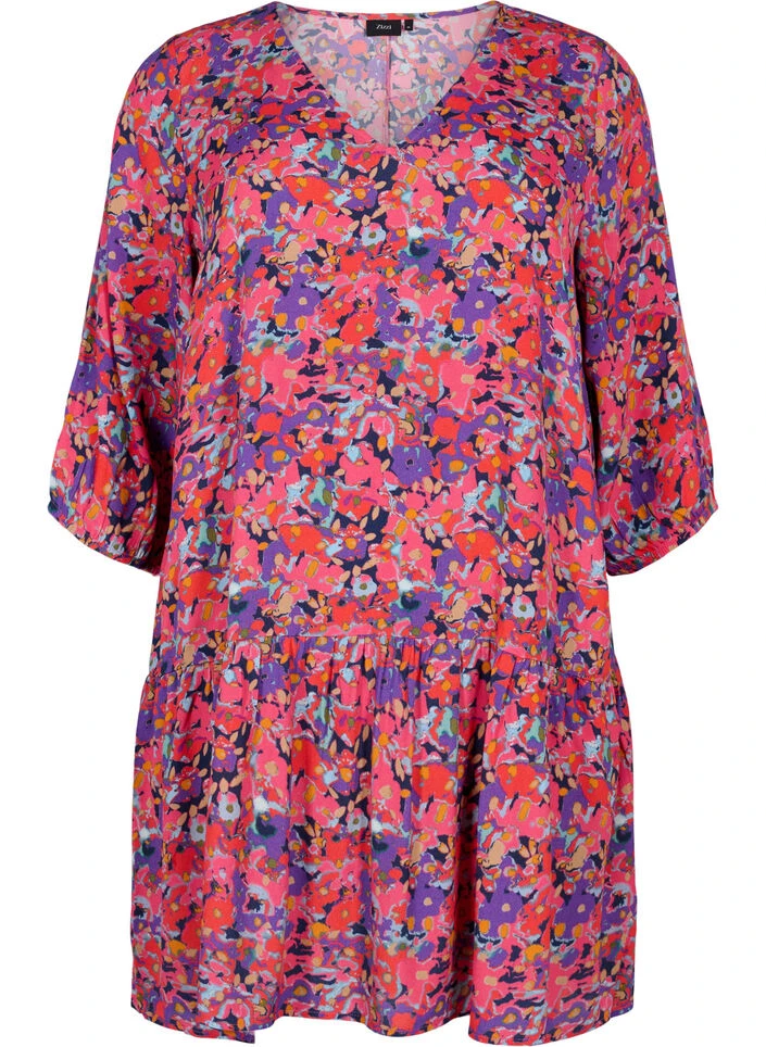 Feminine tunic in wonderful viscose quality with 51% LENZING™ ECOVERO™ Viscose. The tunic has a V-neckline, 3/4 sleeves with elastic cuffs and a pleated cut, that gives the loose A-shape a beautiful silhouette.