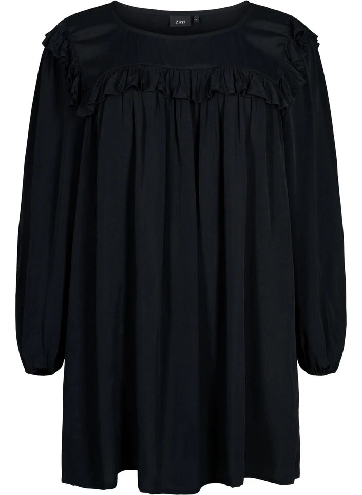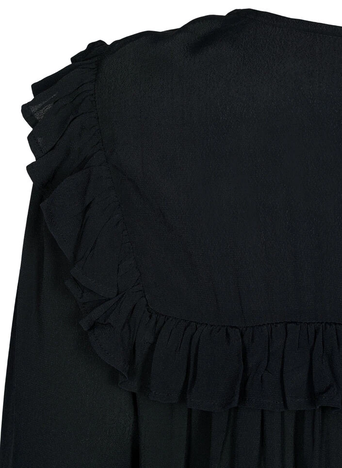 Super feminine tunic with beautiful ruffle details. The tunic has a loose fit with a round neckline and long sleeves. The tunic is made in a soft viscose quality with 50% LENZING™ ECOVERO™ viscose that falls beautifully on the body.