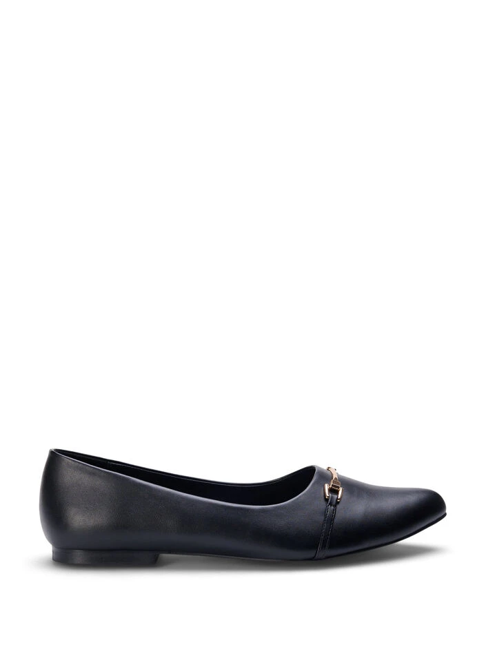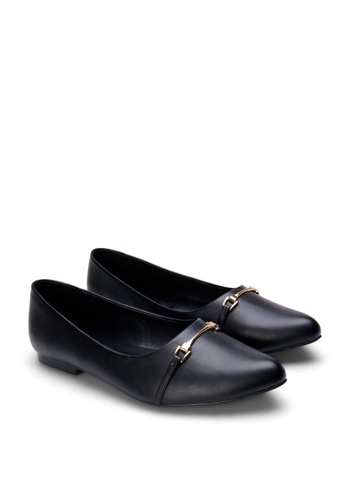 Ballerina in imitation leather with a wide fit and gold coloured buckle. The shoe is designed with a small heel for a more elegant and feminine look.