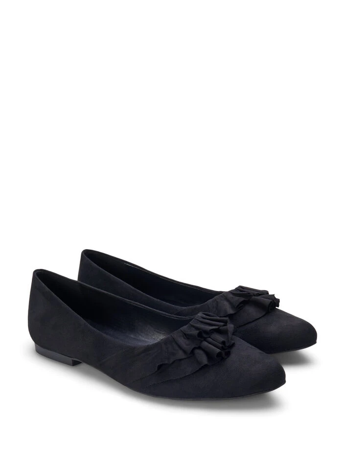 Elegant ballerina designed with feminine ruffle detail. The shoe is made of synthetic leather with a wide fit.