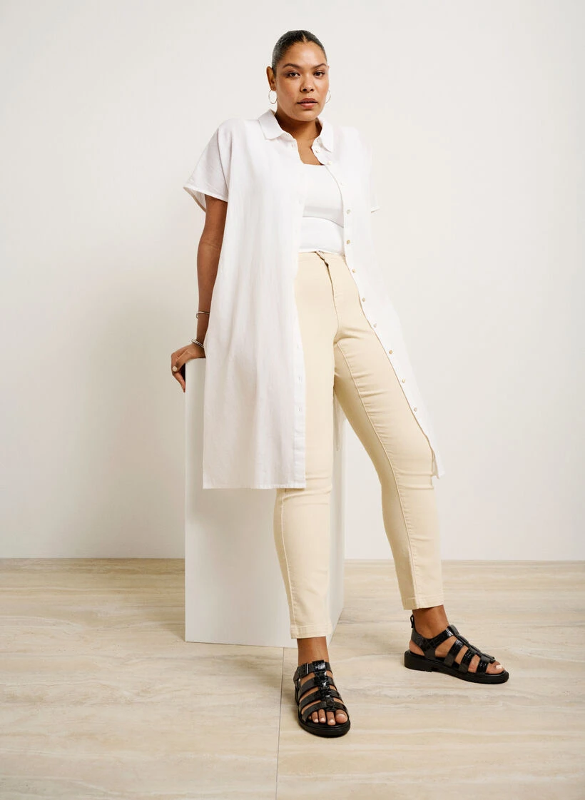 The sandal has an adjustable buckle, and all straps are designed with elastic pieces on the inside so it can stretch and ensure the most optimal fit for each foot.